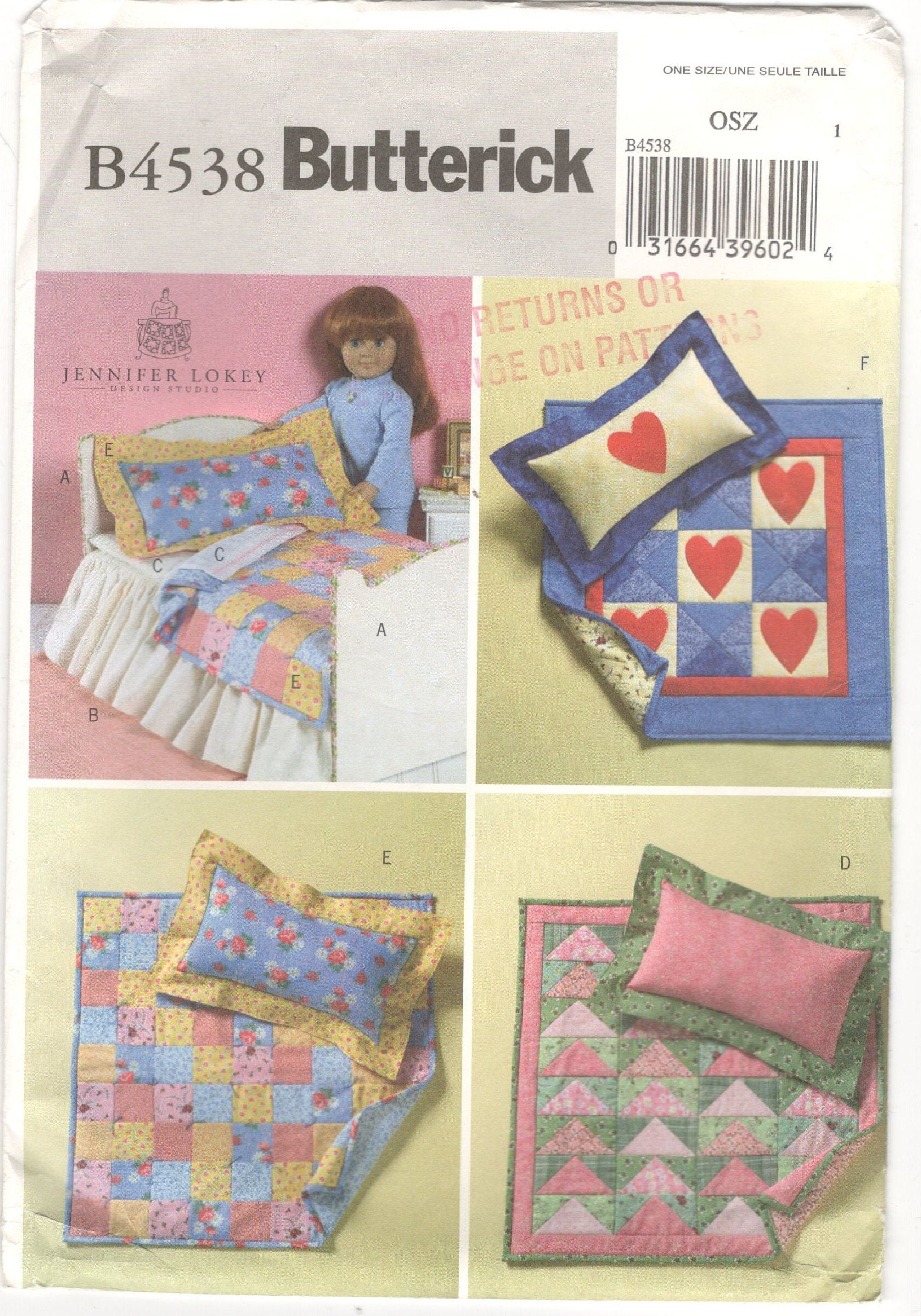Butterick Pattern 4538 18 Doll American Girls Designer Bed Accessories Quilt Pillow Sewing Pattern Heaven